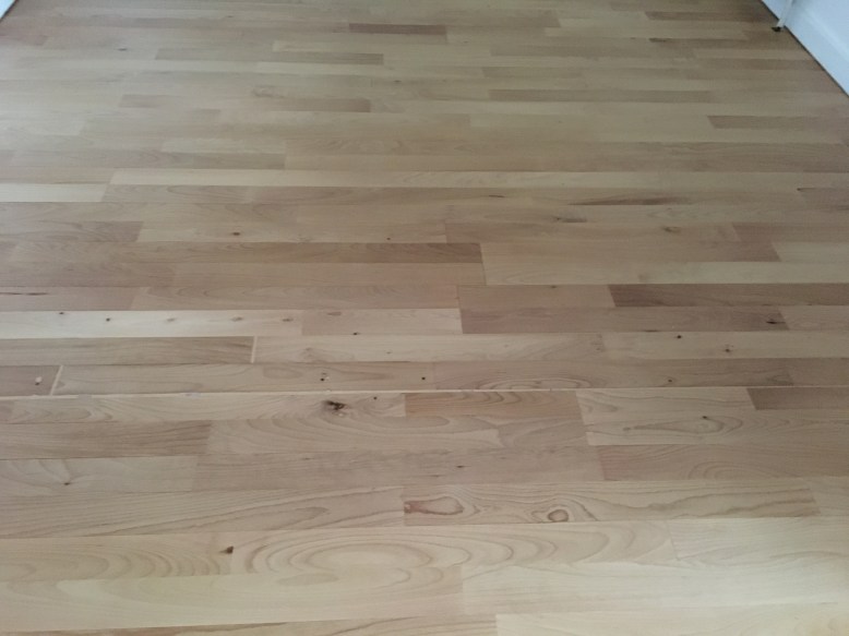 - Bøgeparket efter reparation, slibning og lakering med ultramat klar lak
